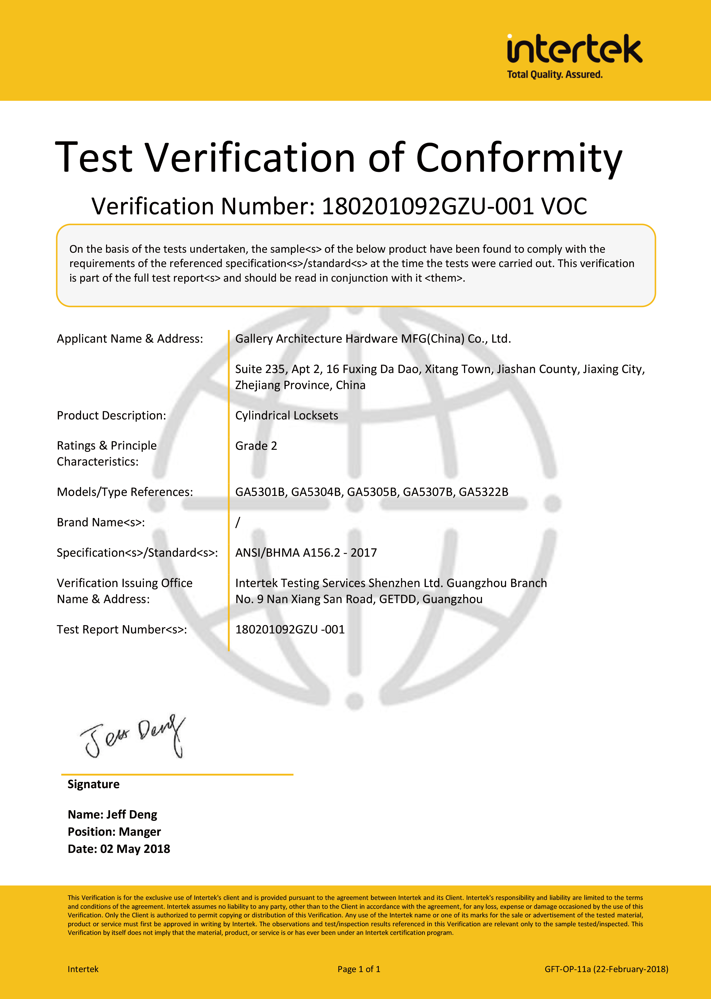 浙江堅迪五金制造有限公司始建于 1995 年。自 2003 開始,公司致力于高標(biāo)準(zhǔn)商業(yè)鎖的研發(fā)工作,并于 2006 及 2007 年,8700 插芯鎖系列獲得美國國家標(biāo)準(zhǔn) ANSI A 156.13-2005 一級、ANSI A 156.2-2003 二級和美國 UL 10C3 小時防火測試認(rèn)證。自 1998 年以來,公司不斷提升產(chǎn)品和客戶服務(wù)品質(zhì),并獲得了 ISO 9001 的認(rèn)證。
